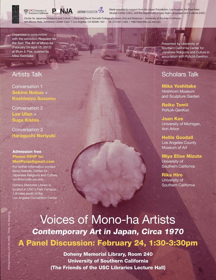 Presented by University of Southern California Center for Japanese Religions and Culture in association with PoNJA-GenKon and in conjunction with the exhibition Requiem for the Sun: The Art of Mono-ha at Blum & Poe, Los Angeles